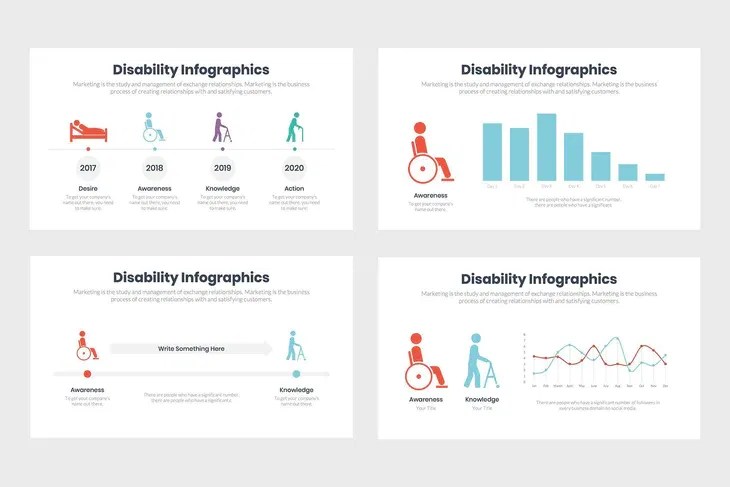 Disability Infographics Template comes with illustrations that you can be used to share important information with your patient in a more didactic way.